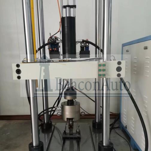 預埋槽道螺栓疲勞試驗機主要由一臺主機(100kN伺服直線作動器)、液壓夾頭及其液壓驅動模塊、一套恒壓伺服泵站(流量36L/min、系統壓力21MPa)、全數字單通道伺服控制器以及計算機打印機、相關試驗軟件、其它必要的附件等組成。