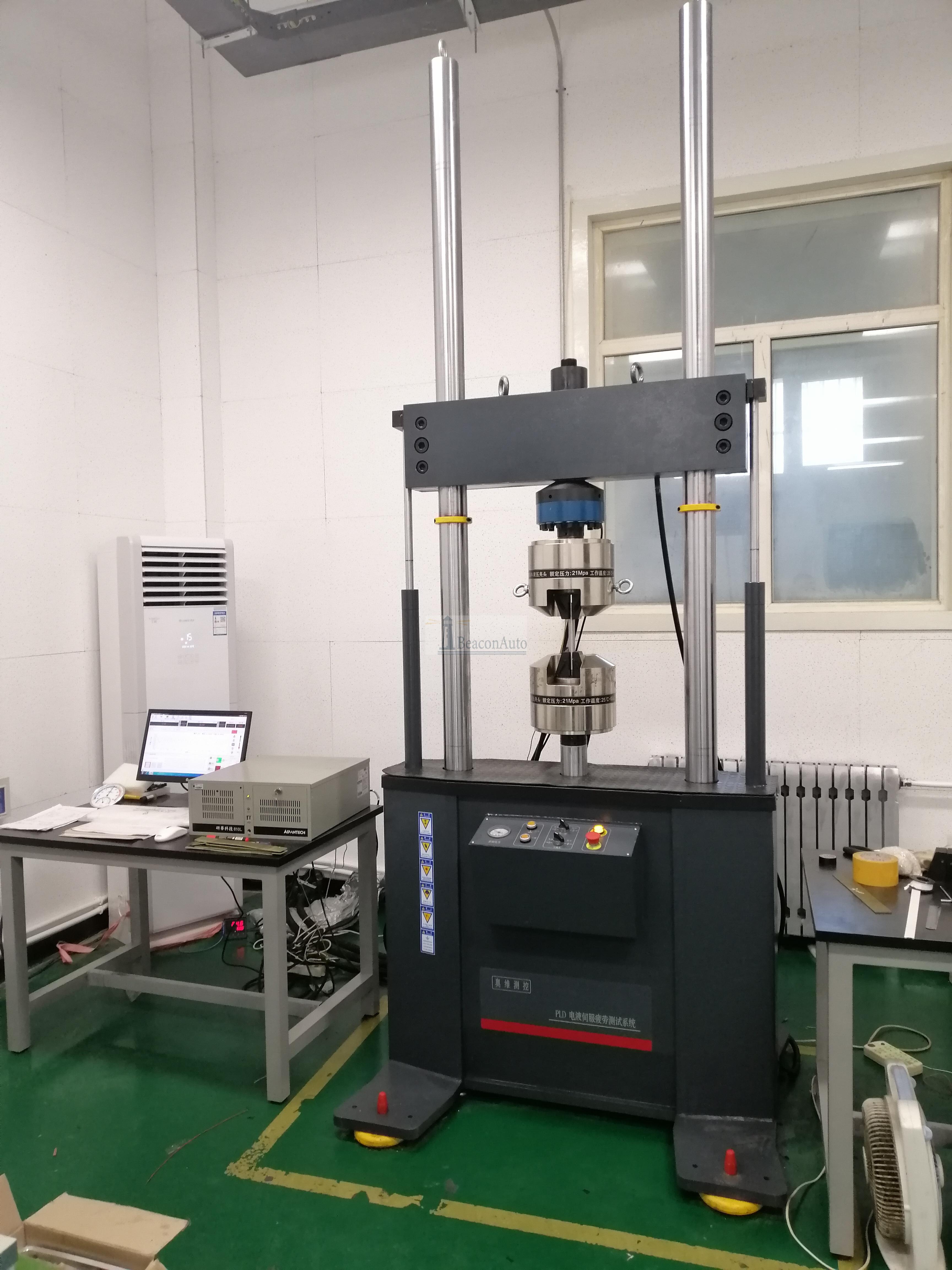 纖維繩索彎曲疲勞試驗(yàn)機(jī) 電梯鋼帶疲勞試驗(yàn)機(jī) 產(chǎn)品型號(hào):SPW-100X 產(chǎn)品用途:電液伺服纖維繩索彎曲疲勞(斷裂強(qiáng)力拉伸)試驗(yàn)機(jī)應(yīng)用于纖維繩的彎曲疲勞斷裂強(qiáng)力拉伸試驗(yàn),可根據(jù)式樣設(shè)置次數(shù)或者繩鎖斷裂顯示速度。 纖維繩索彎曲疲勞試驗(yàn)機(jī)技術(shù)指標(biāo): 1 靜態(tài)試驗(yàn)力: 100kN靜態(tài)示值精度:全程不分檔 ±1% 2、加載油缸行程:1000mm示值精度±0.5% 3、纖維繩索線速度:160mm/s 4、位移測量精度:±0.5%示值 (全程不分檔) 5、位移測量分辨率(磁致伸縮位移傳感器):0.01mm 6、試驗(yàn)次數(shù):可預(yù)置 7、控制方式:負(fù)荷、角速度 8、節(jié)能伺服泵站規(guī)格:流量12L/min,31.5MPa,電機(jī)功率5.5kW,1450r/min 9、繩輪驅(qū)動(dòng)電機(jī)規(guī)格:約20KW 三相異步電機(jī) 技術(shù)參數(shù): 1分辨率:0.01 2測量精度:1級(jí) 3加工定制:是 4電源電壓:380V 5規(guī)格:SPW-100X 6重量:5000kg 7測量范圍:0-100KN 8外形尺寸:950*2500*4200mm 選購儀器注意事項(xiàng): 1、選購時(shí)要注重廠家的實(shí)力。本公司所有產(chǎn)品均質(zhì)保兩年,專業(yè)代加工合作。 2、選購時(shí)要注重設(shè)備的售后服務(wù),好多客戶都說買的時(shí)候機(jī)器價(jià)格倒是挺便宜,但是買回來之后機(jī)器出來問題找不到售后人員來處理,這嚴(yán)重耽誤了您的使用,得不償失。 更多纖維繩索彎曲疲勞試驗(yàn)機(jī) 電梯鋼帶疲勞試驗(yàn)機(jī)資料請電話聯(lián)系我們。