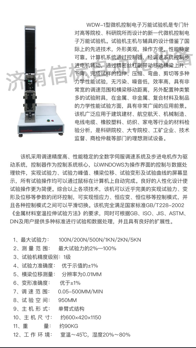 1、最大試驗(yàn)力:    100N/200N/500N/1KN/2KN/5KN
